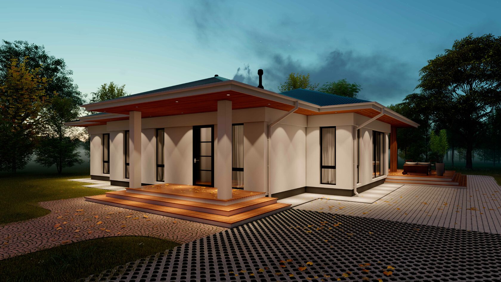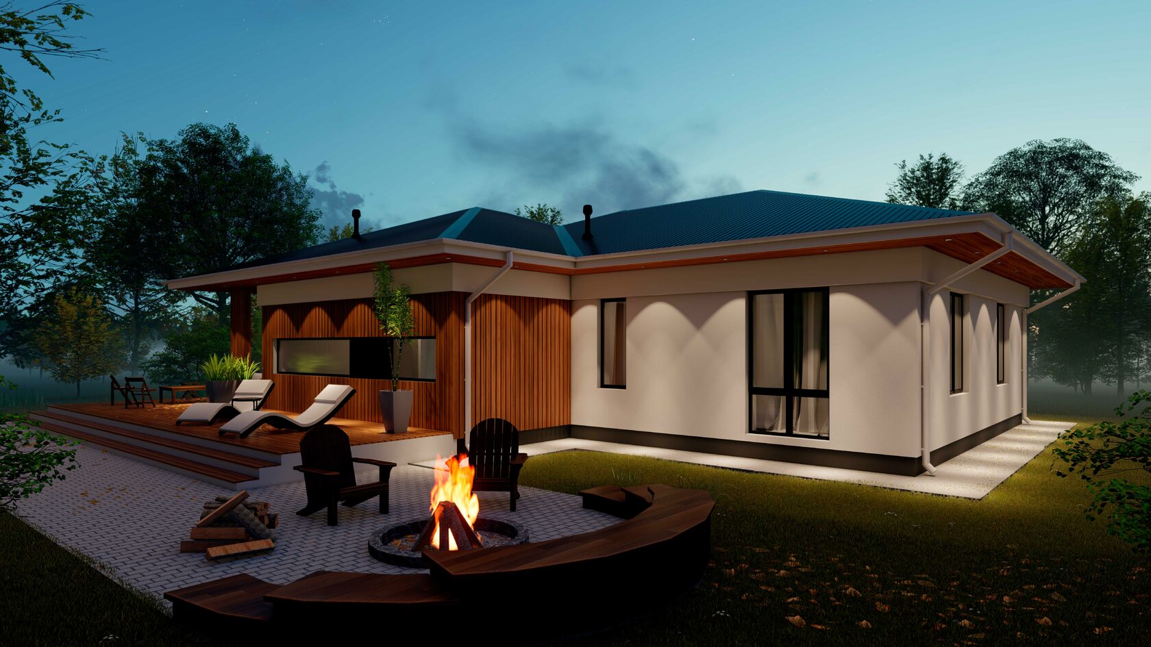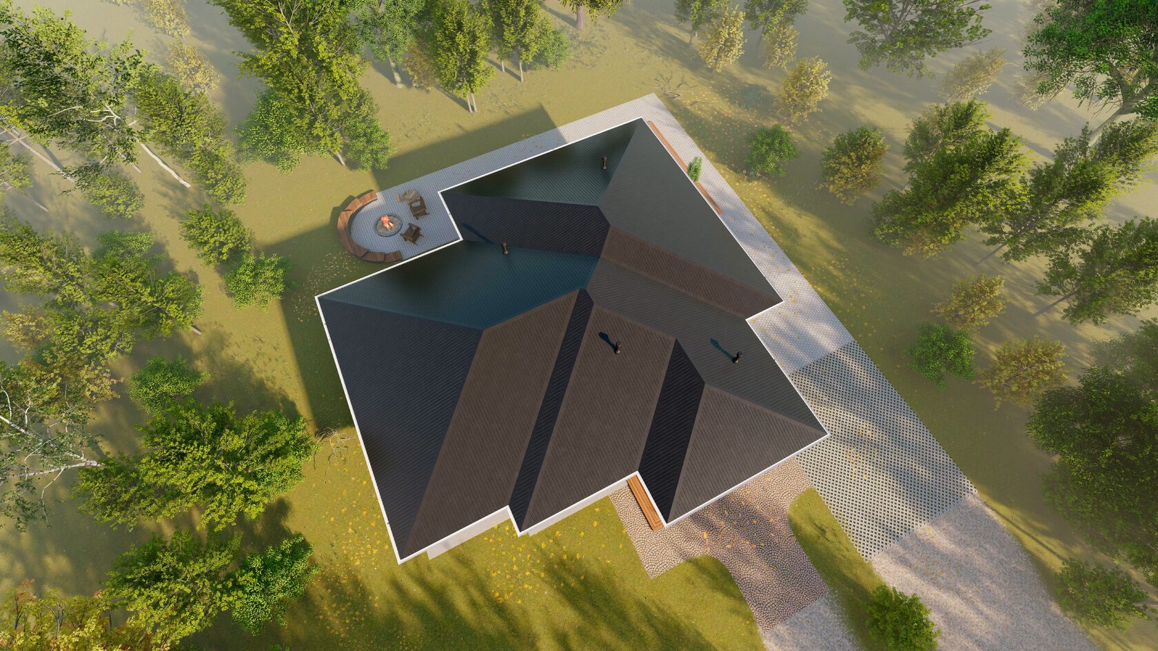 Большие панорамные окна в пол объединят пространство дома и окружающей природы.